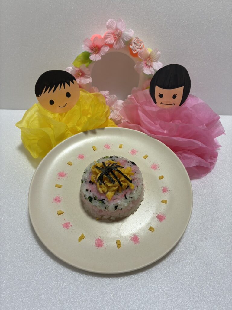 3月3日はひなまつり🌸 きずなのおやつはひなまつりをイメージしたちらし寿司を作りました!健やかな成長と幸せを願い制作も行いました♪ -