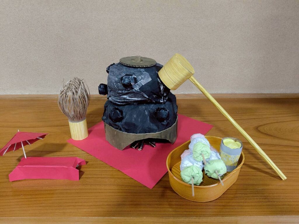 オビアス活動報告 投稿日 2026年3月5日 カテゴリー 活動内容紹介 オビアスカレンダー3月です♫ 天候が良いと飲みたくなる「新茶」!季節の到来前に利用者さんと一緒にお茶を立てるセットを製作してみました♫ホールに飾ってるので見に来てください♫ そして、新茶が手に入れば、管理者がどーしてもやりたい「お茶会」を開催したいと思います!(ホンモノです!)茶道具とわかって一足先に茶を立て、飲む真似した利用者さんを発見しました!(笑) 桃の節句には女性の利用者さんも多く来所されました♫みなさんと一緒に「どら焼き」を作って食べました!!