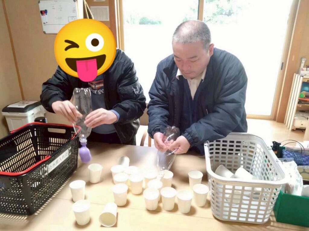 レクリエーションではペットボトルで風船膨らまし、紙コップを早く移動させたり(握る力)新聞紙を早く足で自分の近くに近付けたり(脚の力)新聞紙のやり投げ(上腕の運動)をして楽しみながら過ごしました♫