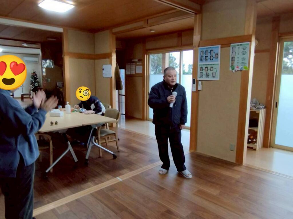 初めてのクリスマスは第三週に「クリスマス週間」として皆さんと一緒に楽しみました♫♫カラオケする方、それに合いの手いれる方、聴きながらおやつを召し上がる方と忘年会気分も感じれる時間でした!