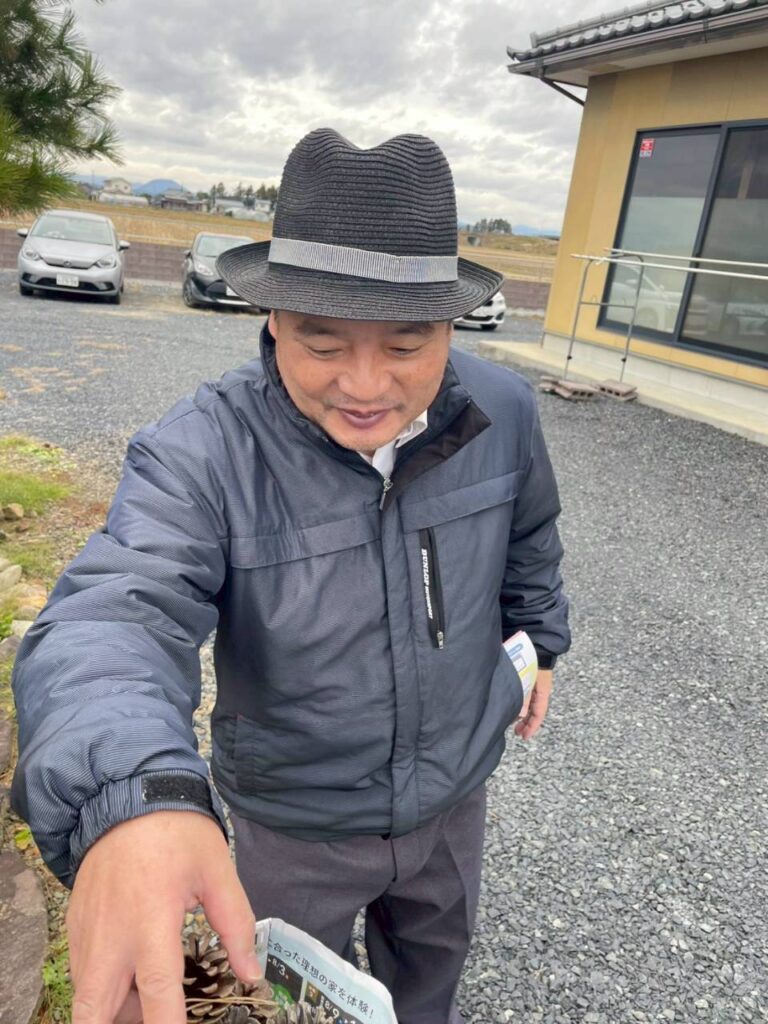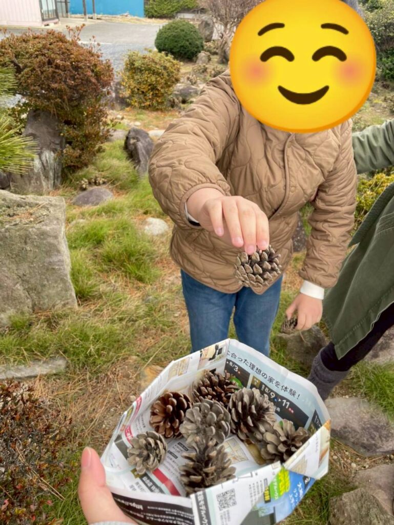 オビアスの庭にある松ぼっくりを拾い、クリスマス制作の準備をしました!いっぱい拾えました♫