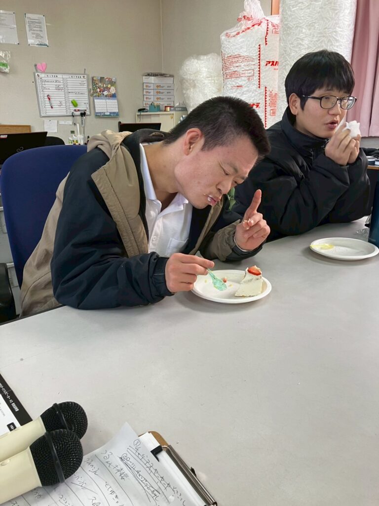 ライフアップ活動報告 投稿日 2025年12月26日 カテゴリー 活動内容紹介 クリスマスイベント3日目の今日はカラオケ大会開催! 最初は歌うのに緊張していた利用者の皆さんも、段々と緊張が解けて大盛り上がりでしたね♪ 次第に踊り始める方や、エアギターをする方も!? 最後にはクリスマスケーキも食べて、楽しい一週間となりました♪ 来年もライフアップはイベントが盛り沢山・・・!さぁ次は何が待っているのでしょうか・・・?
