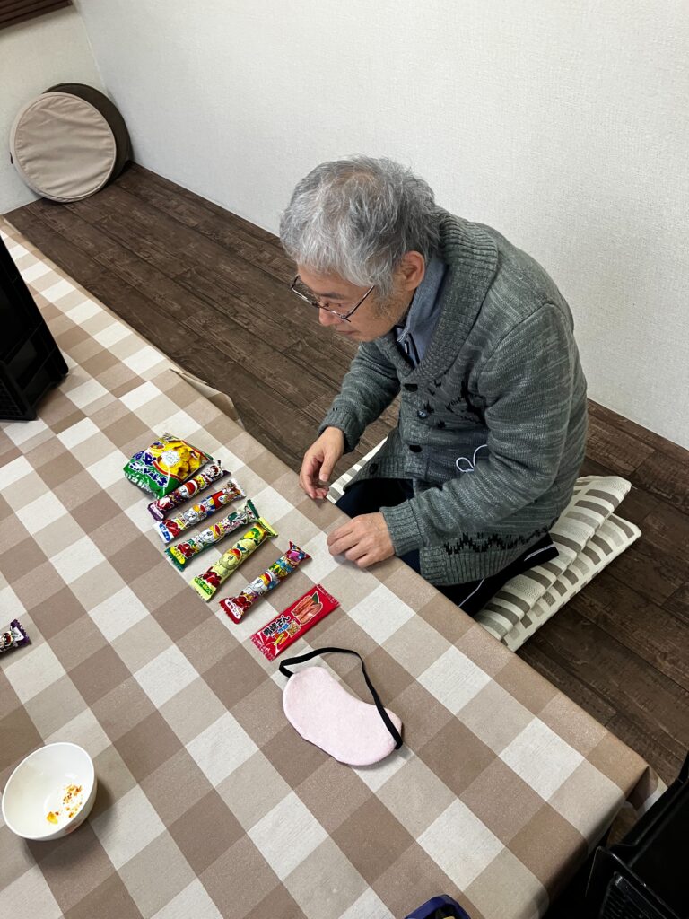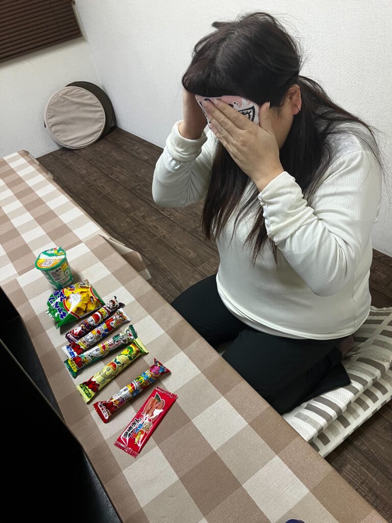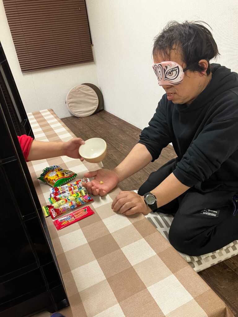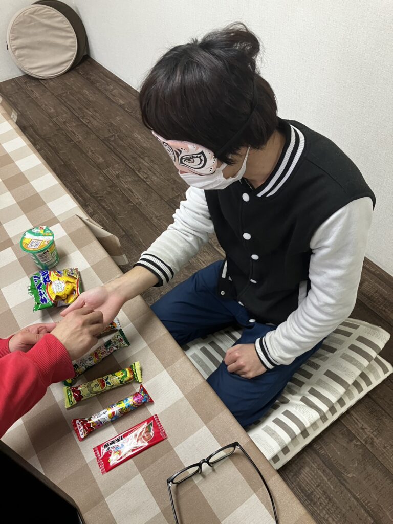 お餅を食べて、お菓子当てゲーム!さぁ目隠ししながら当てることができるかな!??